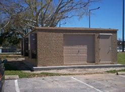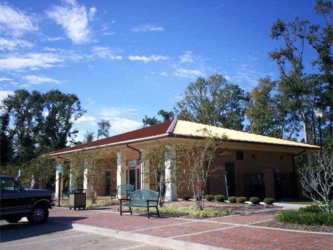 Scope: Wiggins Rest Station is a new 2,750 square foot building which includes drinking fountains, receptionist area, electric roll-down partitions, iron fencing and gates, ceramic tile rest rooms, seating area, and metal roofing with copper gutters and downspouts.