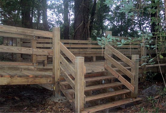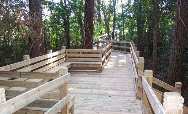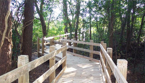 Scope: Clower-Thornton Nature Trail replaced the dirt trail with a new wooden raised boardwalk with railing and repaired railing and decking on the bridge. The boardwalk included a handicap access ramp, two observation decks, and winds over 275 feet through protected wetlands.